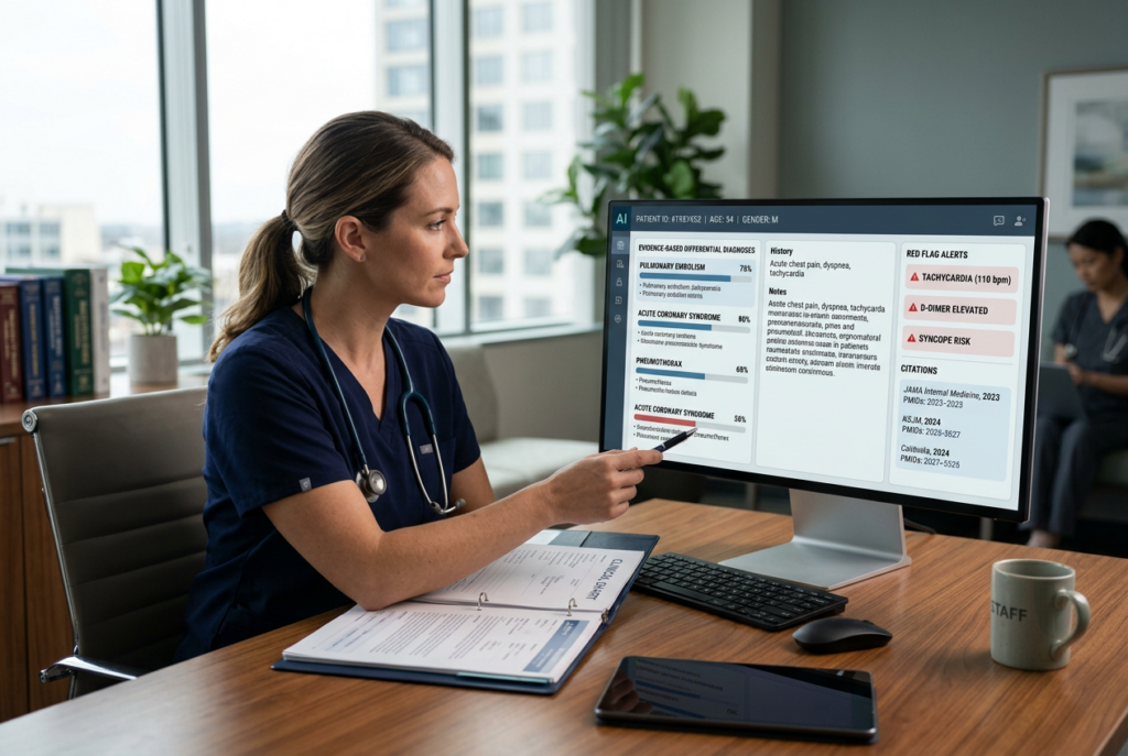 This is why interest in AI-assisted differential diagnosis has grown. The realistic promise is not perfection. It is support: a second pass on the case, a prompt to reconsider alternatives, and faster access to evidence at the point of care.